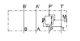Hydraulický redukční přímořízený ventil mezideskový NG06, ISO 4401, Q max=40 l/min, P max= P, A, B 350 bar, T: 50bar, rozsah nastavení do 350 bar