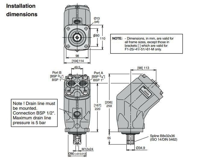 Hydromotor pístový axiální F1-051-M_-__-_-000, 51.1 ccm/ot., 250 bar, 1800 RPM
